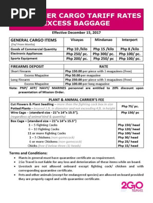 Passenger Cargo Tariff Rates 2go Travel Pdf Cargo Nature
